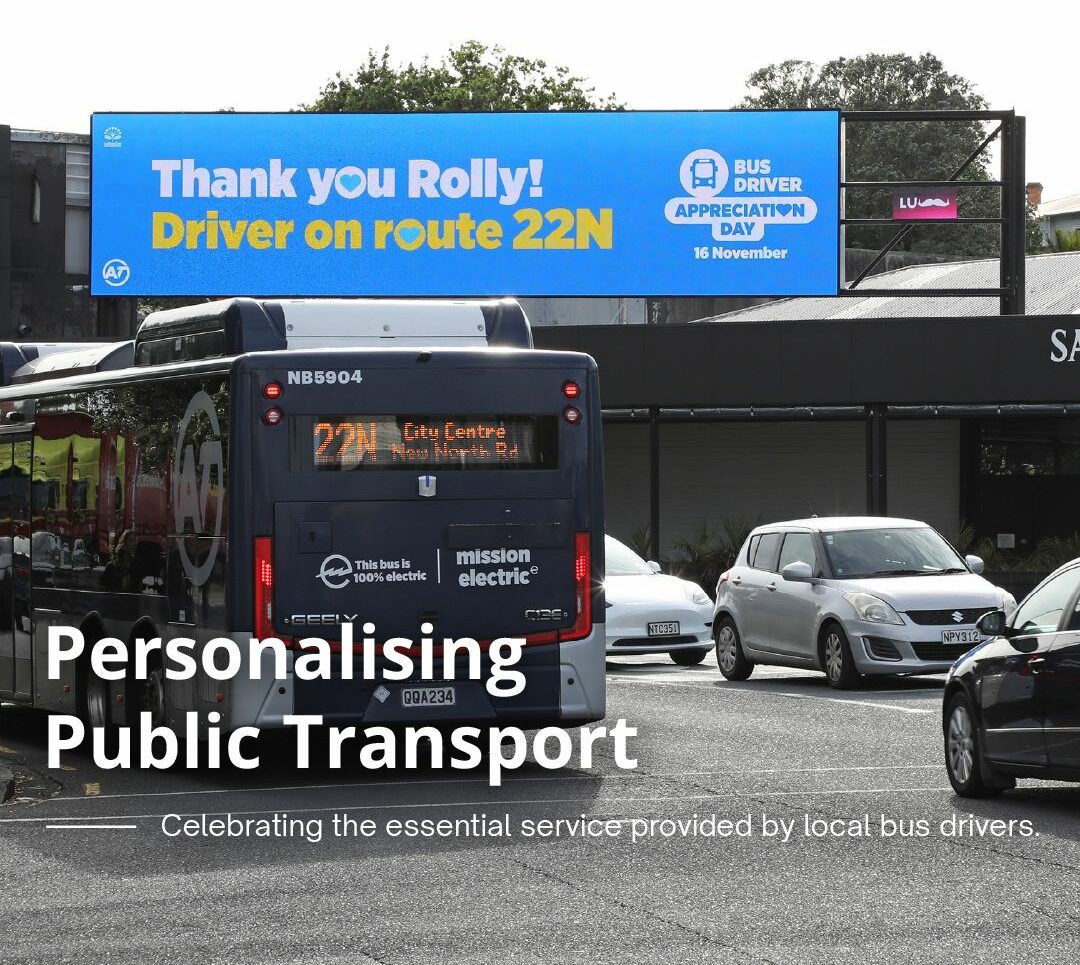 This heartwarming campaign for Auckland Transport transformed Digital Out-of-Home screens into a city-wide salute, celebrating the essential service provided by local bus drivers.