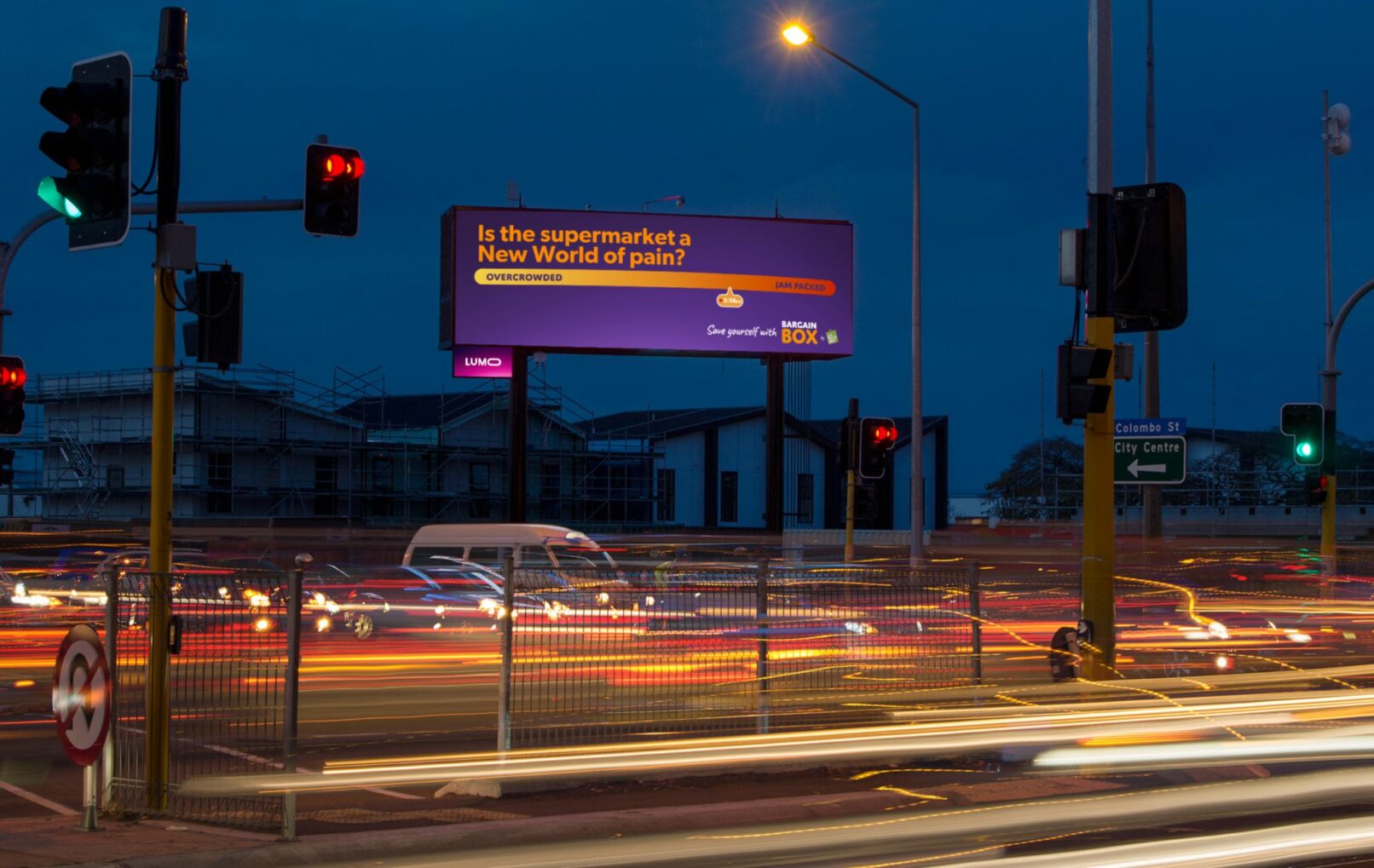 Bargain Box used dynamic OOH to influence grocery shopping in real time. By analysing Google’s “Popular Times” data, our system detected when supermarkets were busiest and triggered creative urging shoppers to skip the crowds and choose Bargain Box instead.