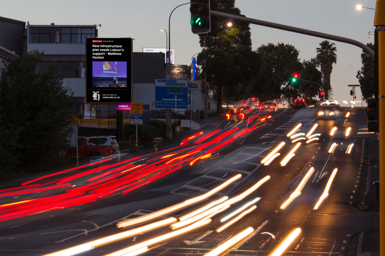 The Herald partnered with Lumo to showcase live nationwide news headlines across their network. The campaign utilised an RSS feed provided by The Herald to filter and highlight breaking news stories. The Herald provided dynamically integrated imagery and text, ensuring that multiple headlines were rotated and displayed in real-time.